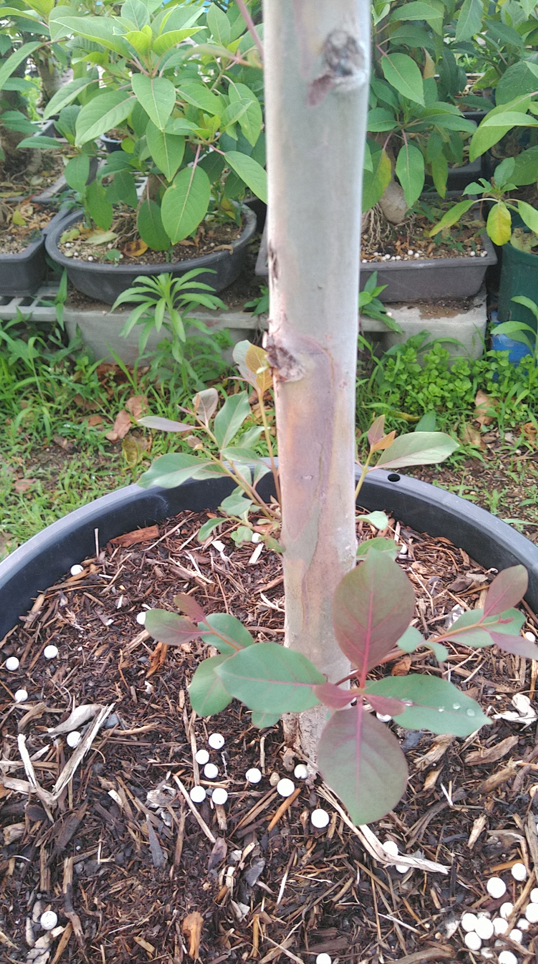 レインボーユーカリは樹勢が強く、株に対してサイズ感の鉢に植えていただければ、