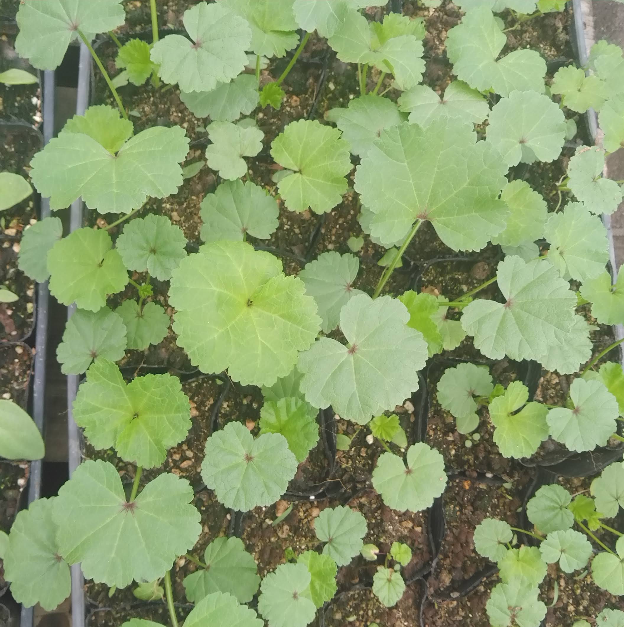 特に自然豊かな当農場では、夏時期は草刈りを行い、ぽつんとコモンマローの鉢苗があるエリアでは食害がおきます。