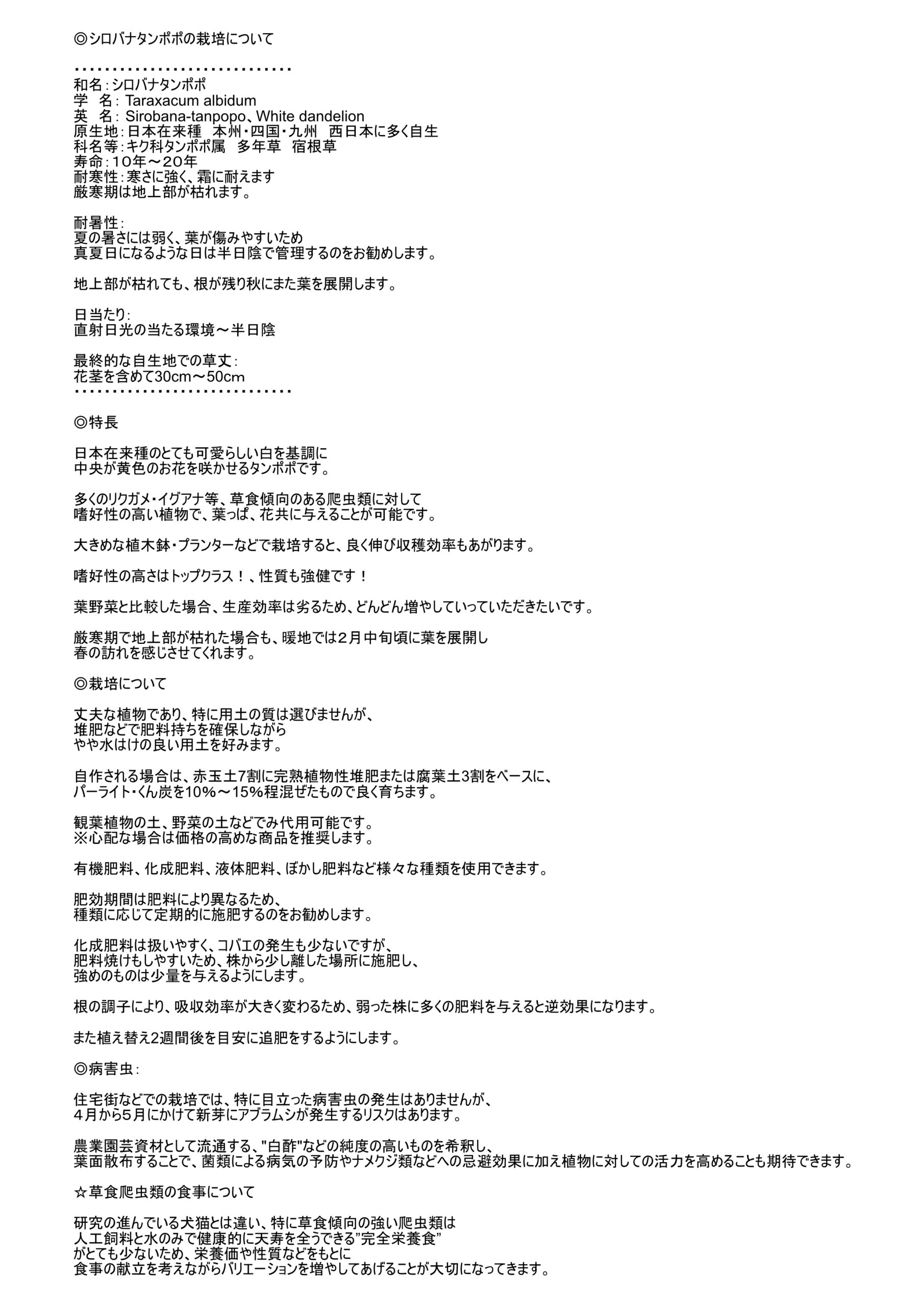 葉っぱ・花共にリクガメ、イグアナ等の草食爬虫類に対して嗜好性がとても高く